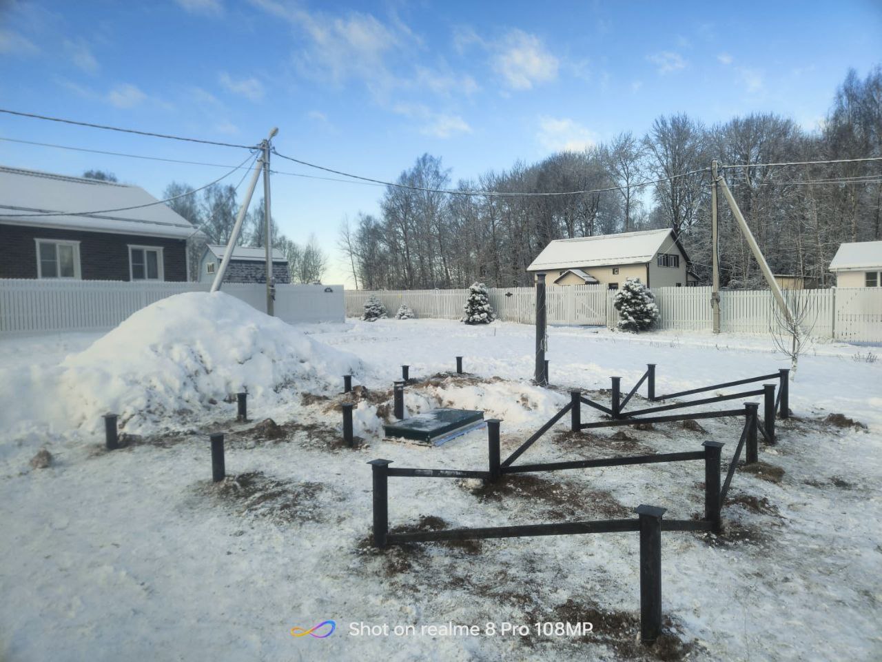 В связи с тем, что работы выполнялись зимой и участок был покрыт снегом, первым этапом стала очистка рабочей зоны от снежного покрова. Мы тщательно расчислили площадку, обеспечив удобный доступ к точкам установки свай и организовав комфортное пространство для размещения оборудования.