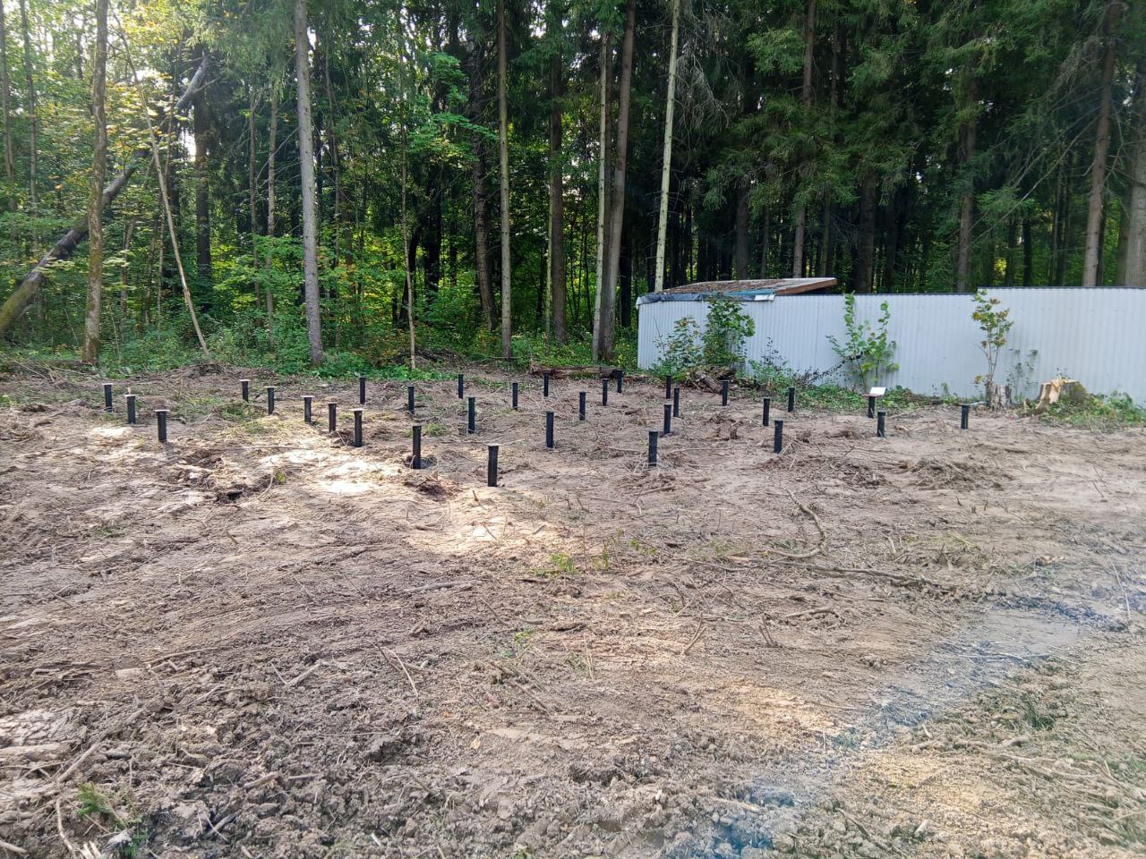 Свайно-винтовой фундамент из 34 свай, закручены до плотного грунта